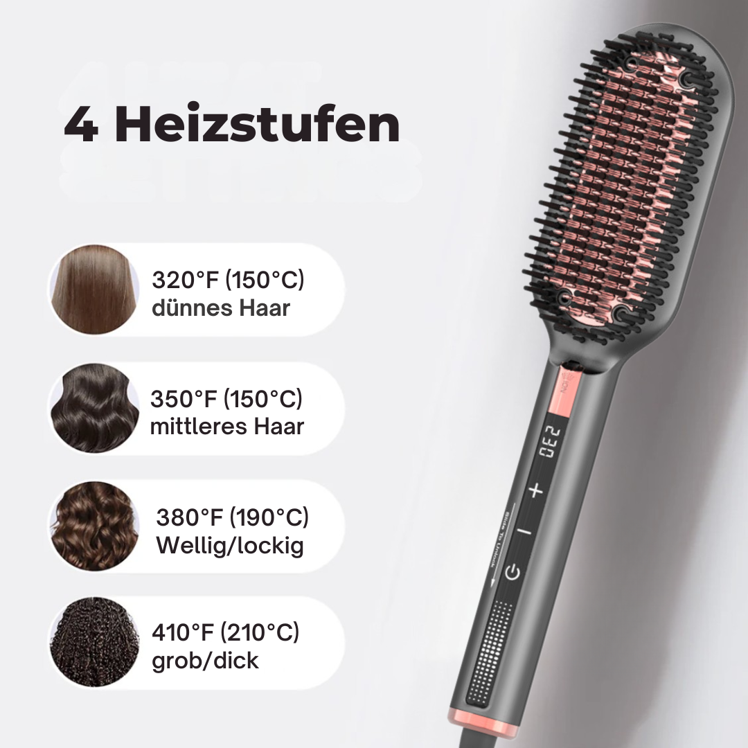 Ja, die Temperatur lässt sich individuell anpassen. Für feines oder empfindliches Haar empfiehlt sich eine niedrigere Stufe, damit dein Haar sanft geglättet wird, ohne an Volumen zu verlieren.