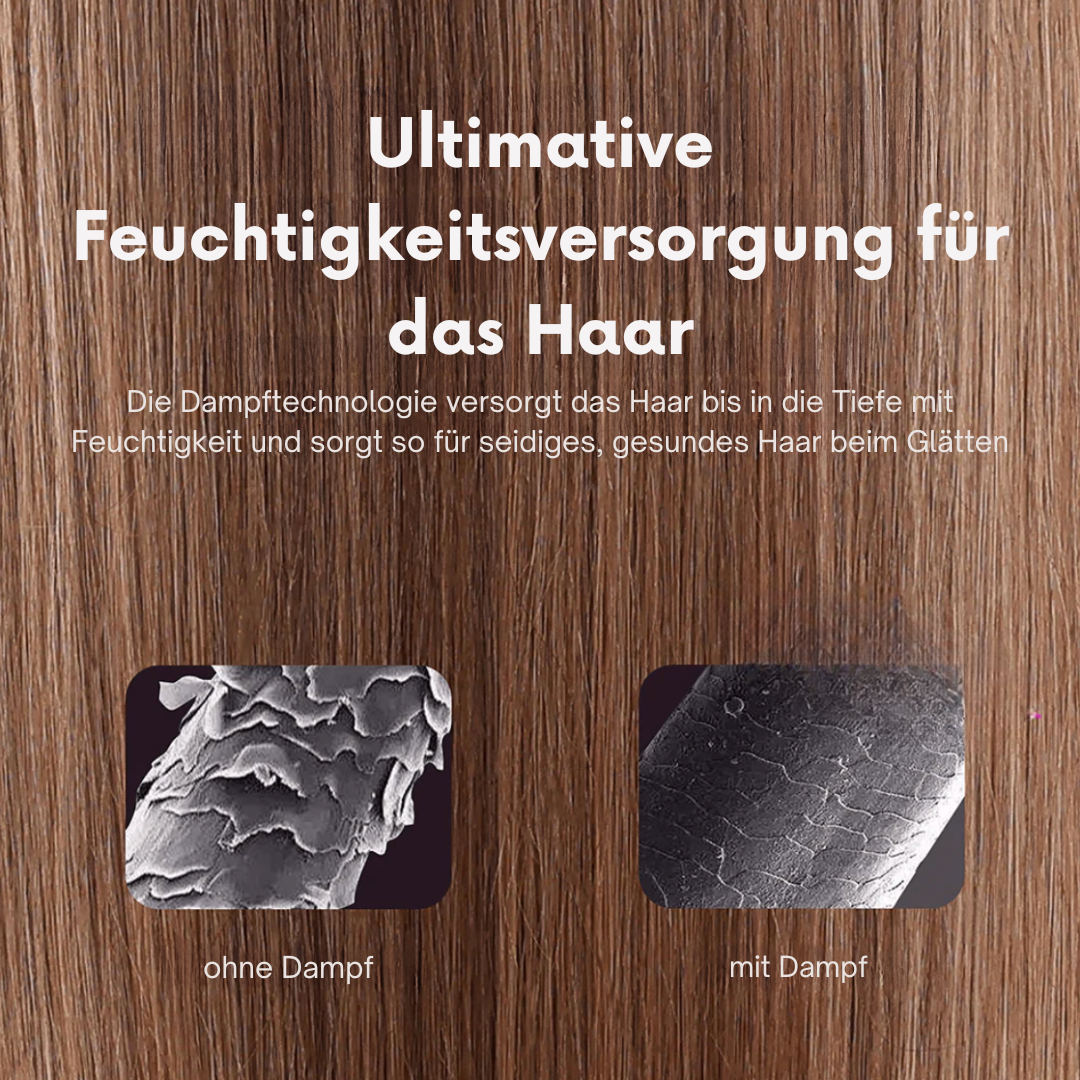 Die Dampfglättbürste kombiniert Glätteisen, Sytlingbürste und Feuchtigkeitspflege in einem Gerät. Geniesse sichtbar gesünderes, glänzendes Haar nach jeder Anwendung.